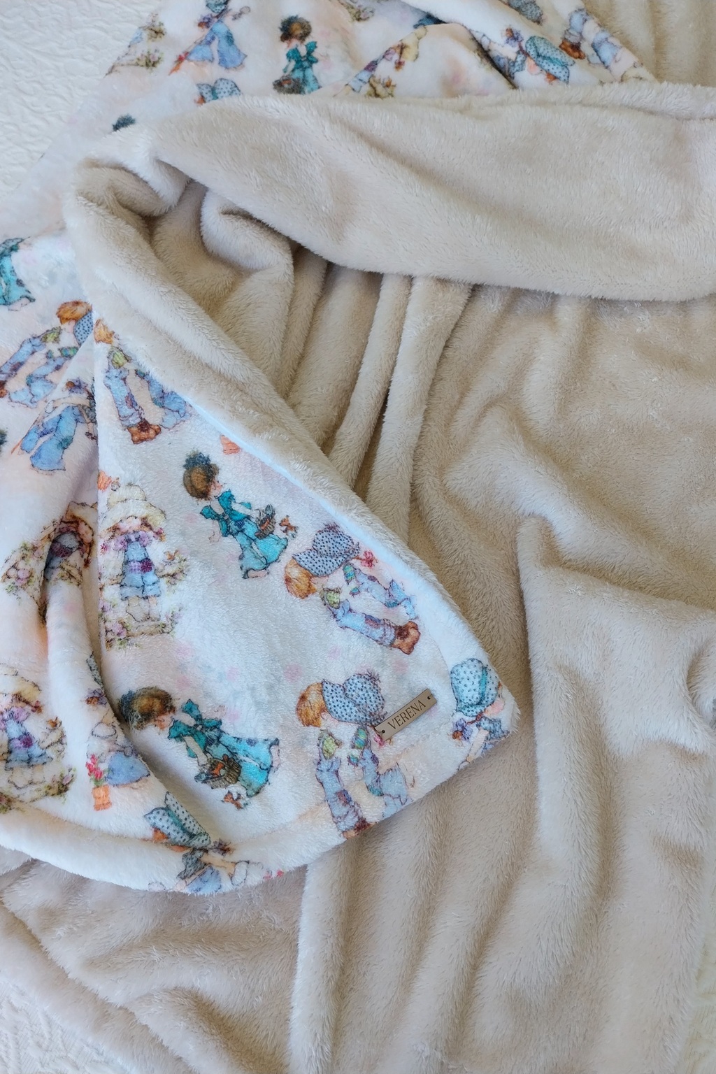 Está confeccionada artesanalmente en polar soft con efecto aterciopelado, combinado darlon reeb con corderito soft, super suave al tacto.