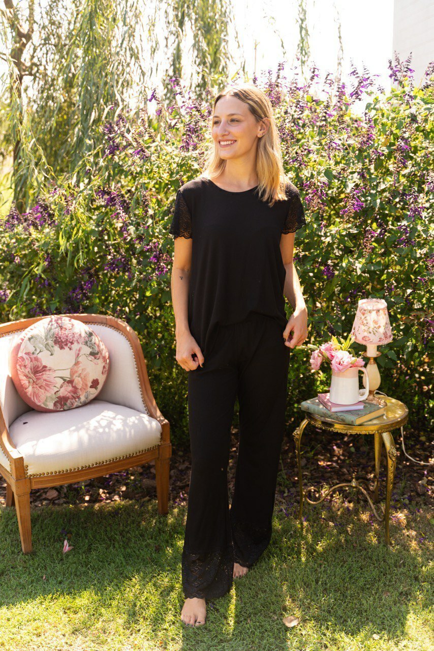 El pijama Giselle está confeccionado en morley soft, una tela muy suave que cede y se adapta con facilidad.